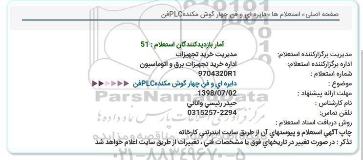 اداره برگزارکننده استعلام: اداره خرید تجهیزات برق و اتوماسیون
