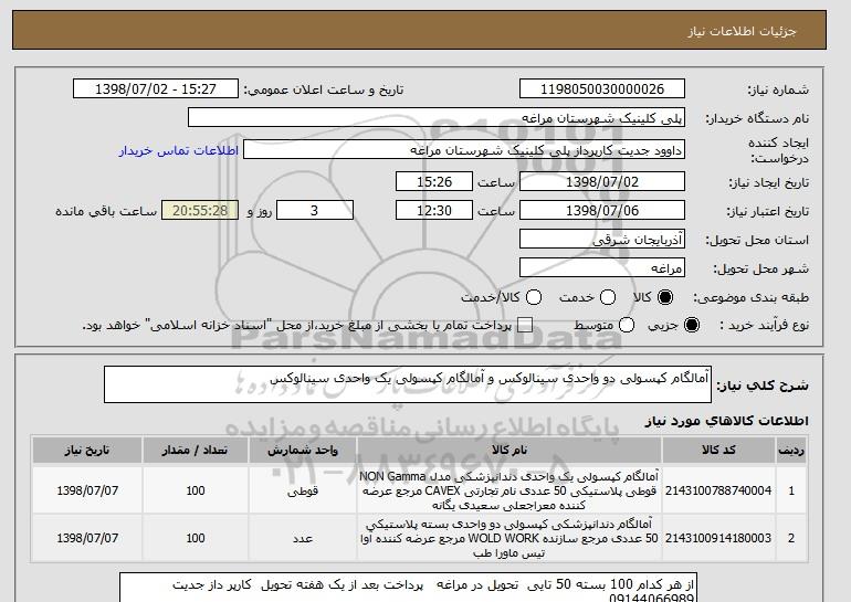 شرح کلی نیاز: آمالگام کپسولی دو واحدی سینالوکس و آمالگام کپسولی یک واحدی سینالوکس