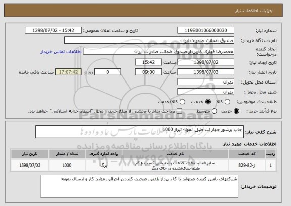 شرح کلی نیاز: چاپ برشور چهار لت طبق نمونه تیزاژ 1000