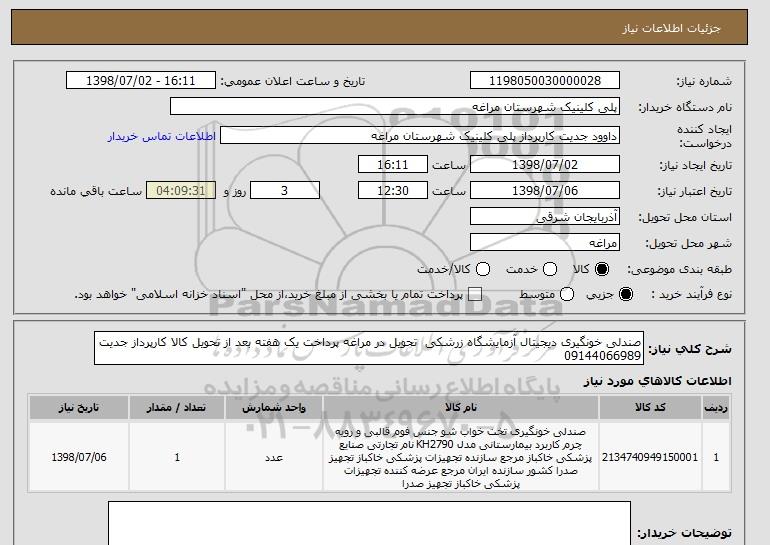 نام دستگاه خریدار:پلی کلینیک شهرستان مراغه