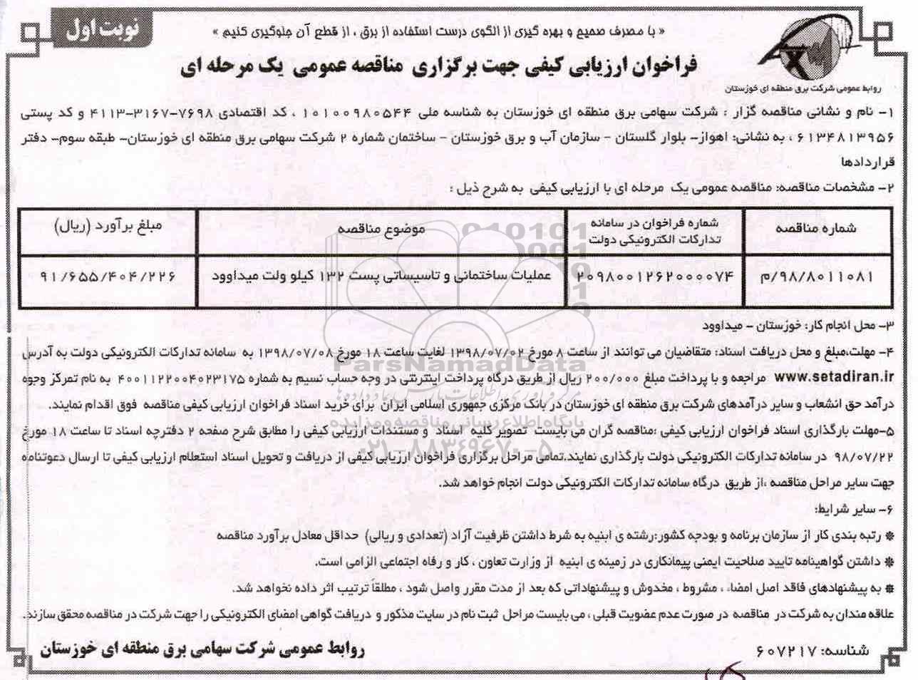 98/8011081/م 2098001262000074 عملیات ساختمانی و تاسیساتی پست 132 کیلوولت مید اوود