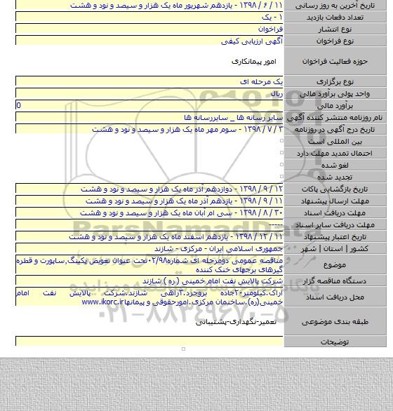 مناقصه عمومی دومرحله ای شماره۰۲/۹۸تحت عنوان تعویض پکینگ٫ساپورت و قطره گیرهای برجهای خنک کننده