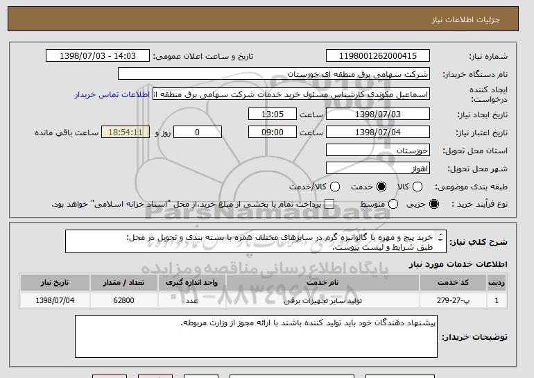 نام دستگاه خریدار:شرکت سهامی برق منطقه ای خوزستان