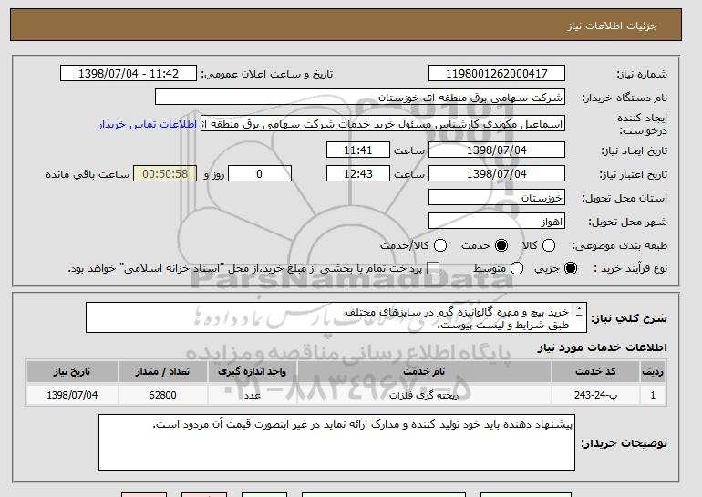 شرح کلی نیاز: خرید پیچ و مهره گالوانیزه گرم در سایزهای مختلف