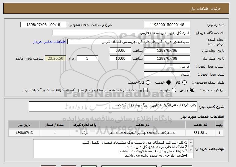 شرح کلی نیاز: چاپ فرمهای غربالگری مطابق با برگ پیشنهاد قیمت