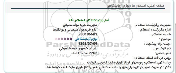 استعلام لوازم آزمایشگاهی , استعلام, استعلام لوازم آزمایشگاهی