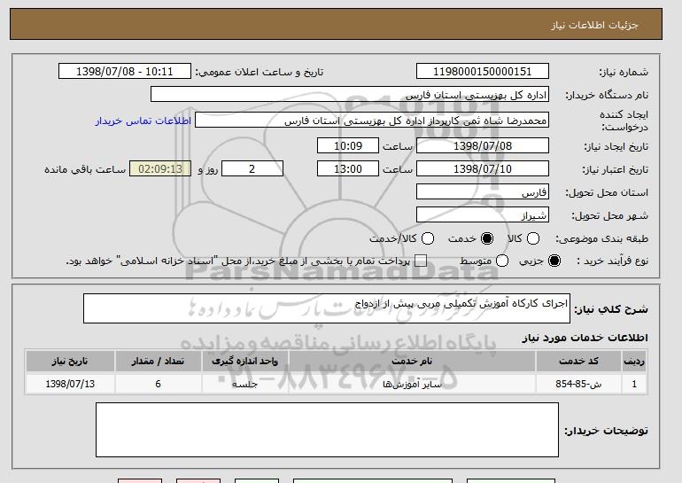 شرح کلی نیاز: اجرای کارکاه آموزش تکمیلی مربی پیش از ازدواج