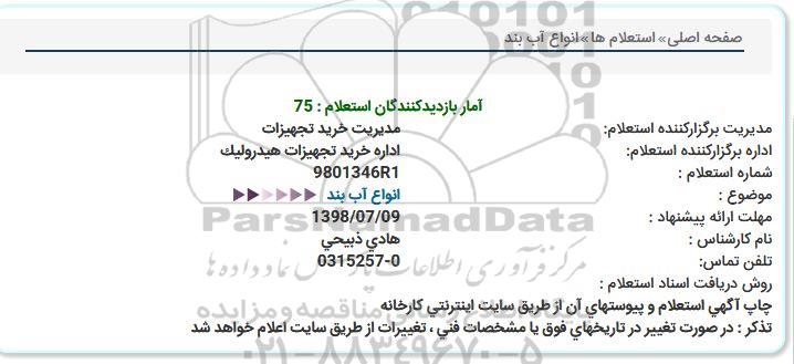 اداره برگزارکننده استعلام:     اداره خرید تجهیزات هیدرولیک