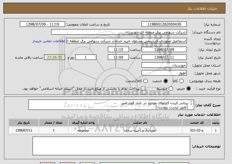 شرح کلی نیاز: ریباندر کردن کابلهای موجود در انبار کوت امیر