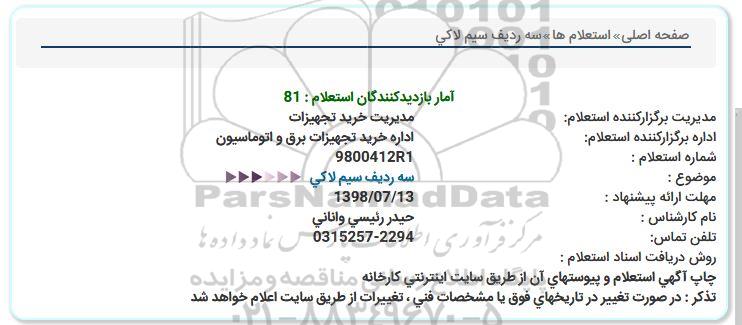استعلام سه ردیف سیم لاكی , استعلام, استعلام سه ردیف سیم لاكی
