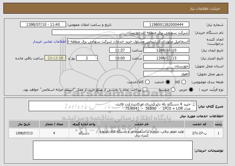 نام دستگاه خریدار:شرکت سهامی برق منطقه ای خوزستان