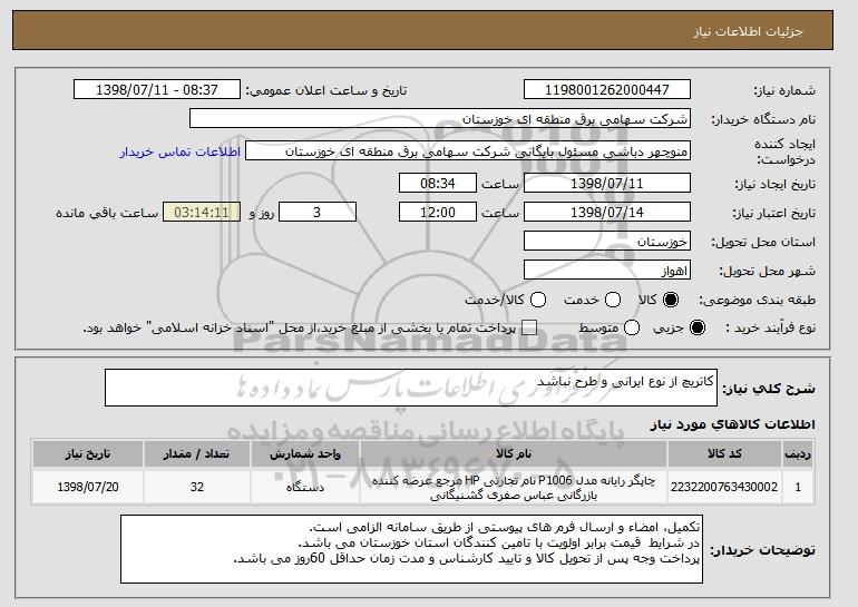 شرح کلی نیاز: کاتریچ از نوع ایرانی و طرح نباشد