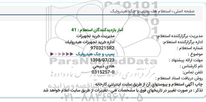 استعلام پمپ و جک هیدرولیک, استعلام, استعلام پمپ و جک هیدرولیک