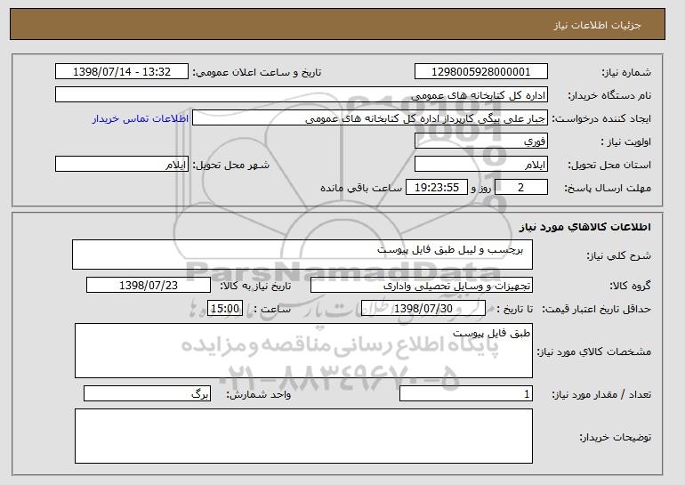 نام دستگاه خریدار:اداره کل کتابخانه های عمومی