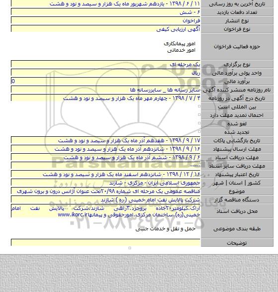 برای شرکت در مناقصه حتما از تصویر آگهی در سایت پارس نماد داده ها استفاده نمایید