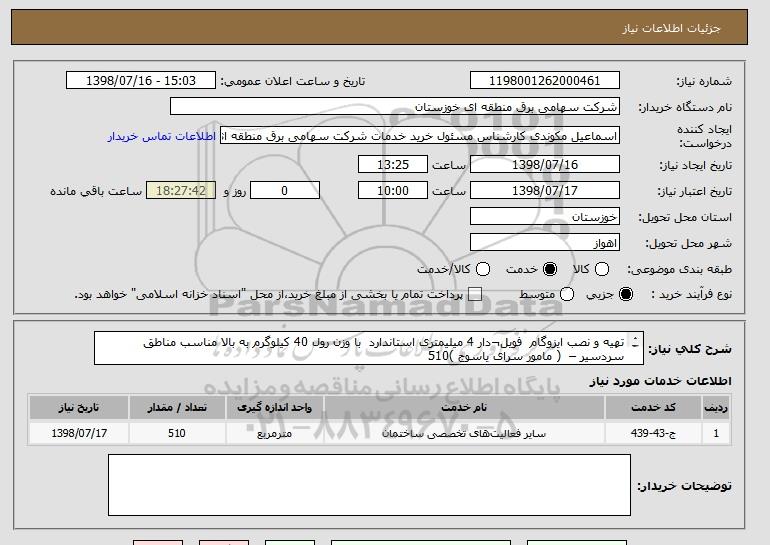 نام دستگاه خریدار:شرکت سهامی برق منطقه ای خوزستان
