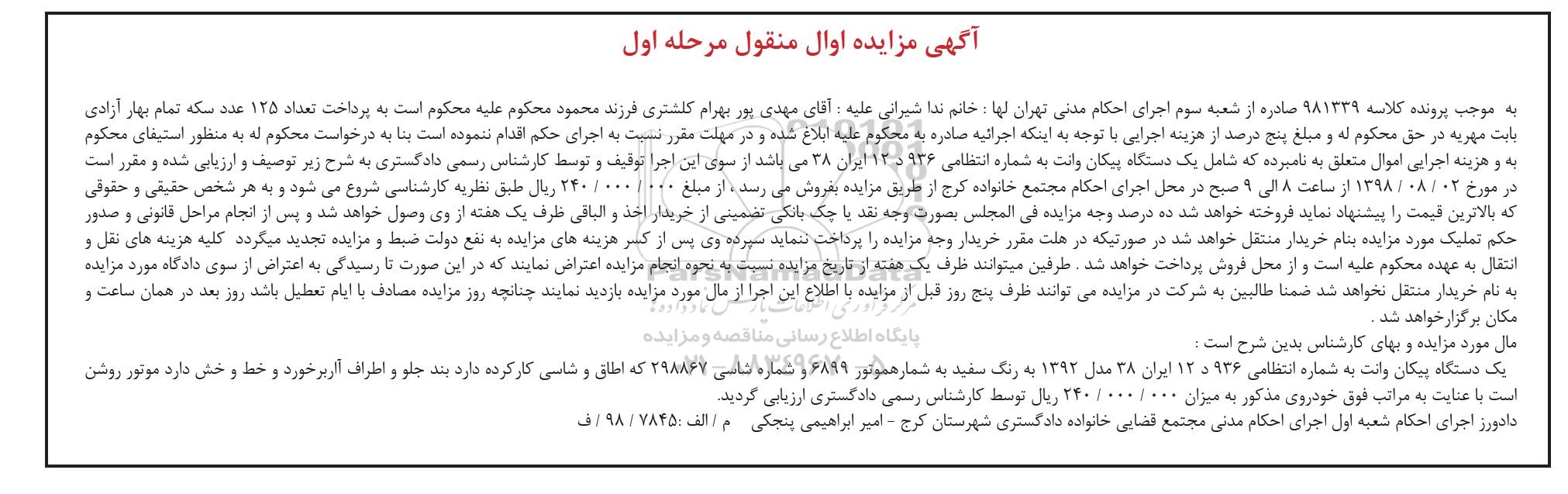 آگهی ها طبق تصویر آگهی صرفا جهت اطلاع رسانی می باشد