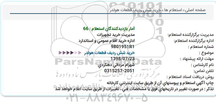 اداره برگزارکننده استعلام: اداره خرید اقلام عمومی و استاندارد