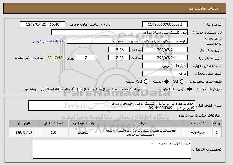 شرح کلی نیاز: خدمات مورد نیاز برای پلی کلینیک تامین اجتماعی مراغه