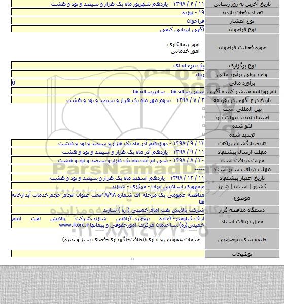 مناقصه عمومی یک مرحله ای شماره ۱۸/۹۸تحت عنوان انجام حجم خدمات آبدارخانه ها