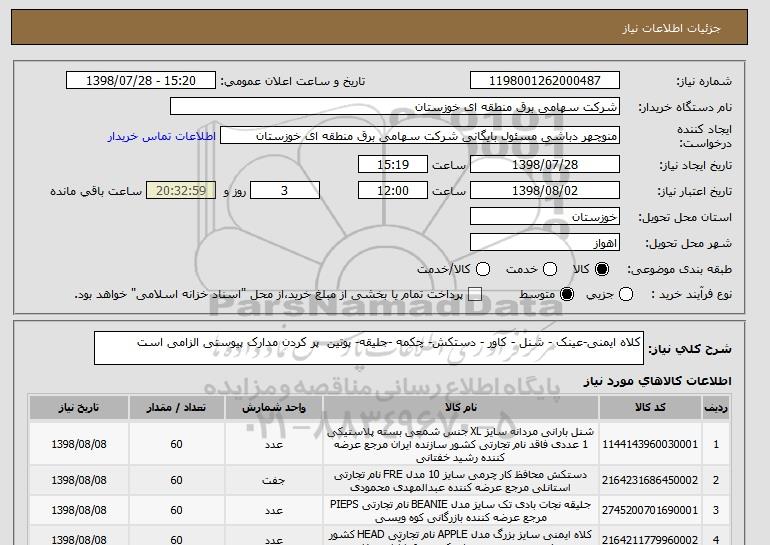 نام دستگاه خریدار:شرکت سهامی برق منطقه ای خوزستان