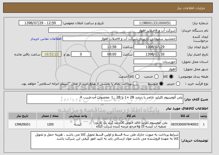 نام دستگاه خریدار:شرکت آب و فاضلاب اهواز