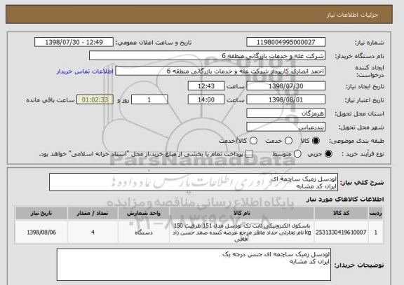 نام دستگاه خریدار:شرکت غله و خدمات بازرگانی منطقه 6
