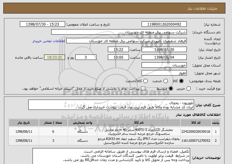 نام دستگاه خریدار:شرکت سهامی برق منطقه ای خوزستان