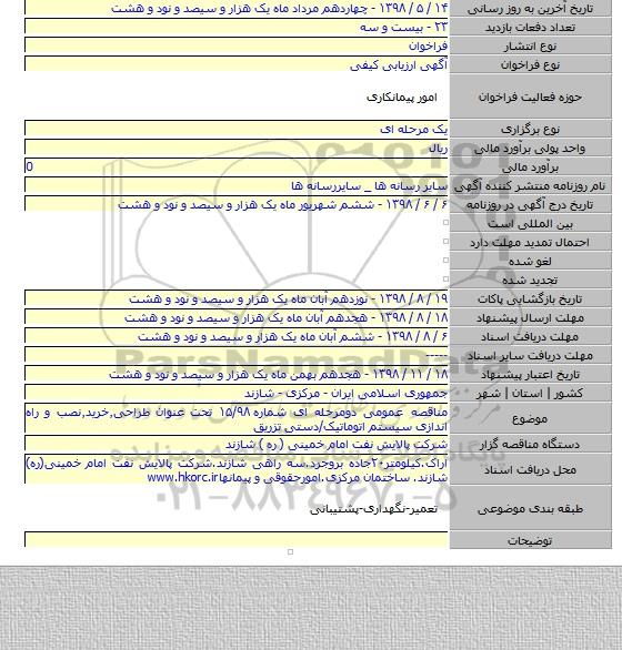 مناقصه عمومی دومرحله ای شماره ۱۵/۹۸ تحت عنوان طراحی٫خرید٫نصب و راه اندازی سیستم اتوماتیک/دستی تزریق