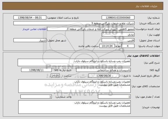 مشخصات کالای مورد نیاز: تعمیرات رمپ وسازه باسکول و ایزوگام سیلوی داراب