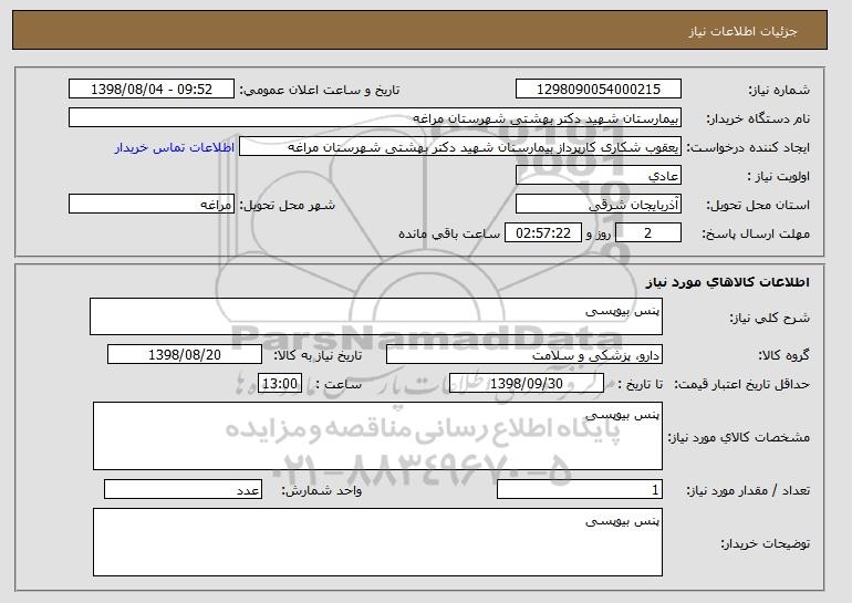 نام دستگاه خریدار:بیمارستان شهید دکتر بهشتی شهرستان مراغه