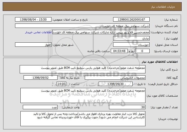 نام دستگاه خریدار:شرکت سهامی برق منطقه ای خوزستان