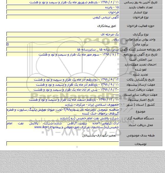 مناقصه عمومی دومرحله ای شماره۰۲/۹۸تحت عنوان تعویض پکینگ٫ساپورت و قطره گیرهای برجهای خنک کننده