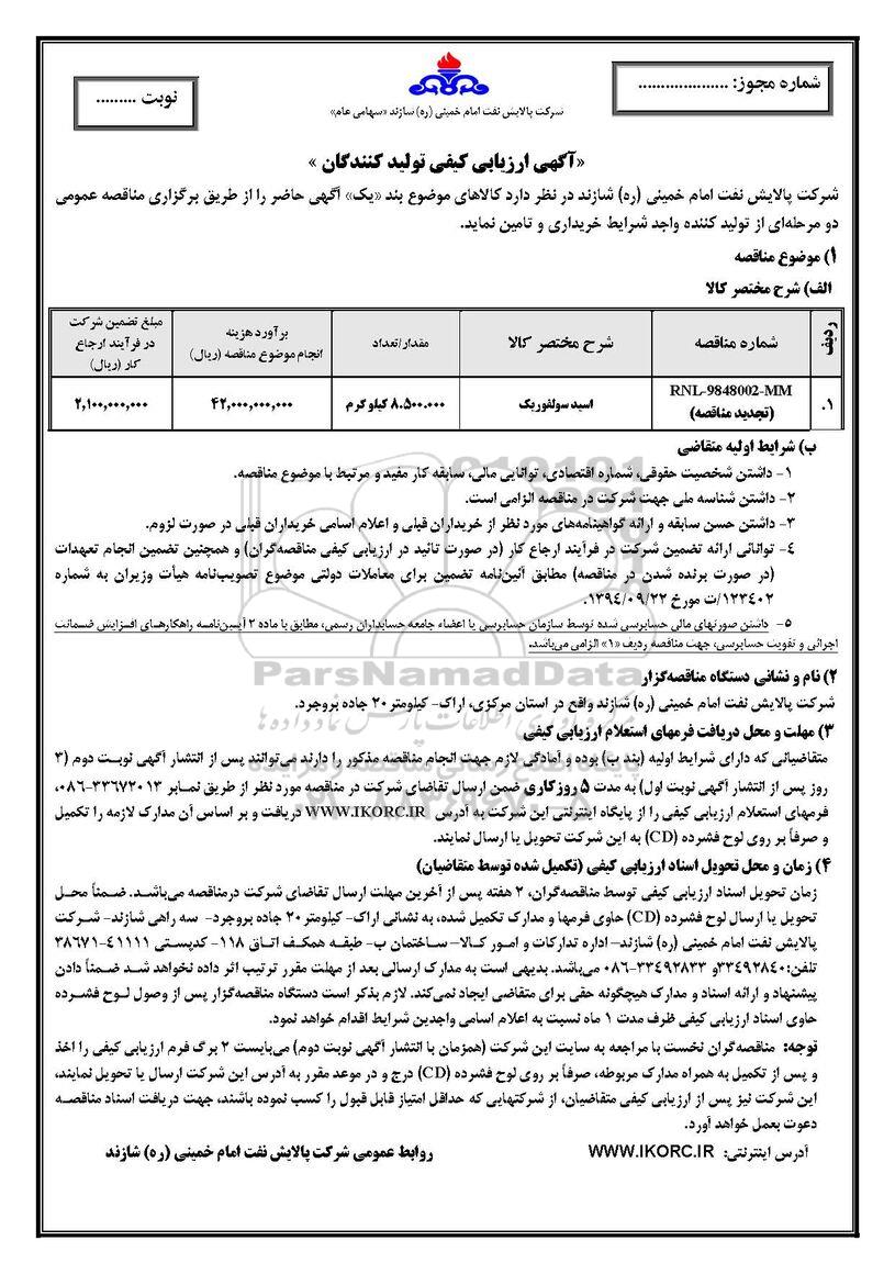 مناقصه ​اسید سولفوریک , مناقصه​ , مناقصه ​اسید سولفوریک