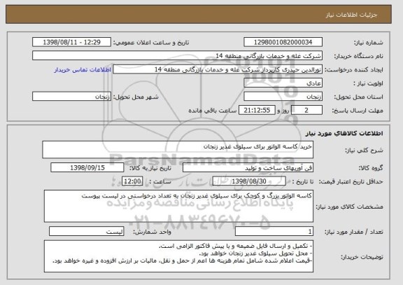 نام دستگاه خریدار:شرکت غله و خدمات بازرگانی منطقه 14