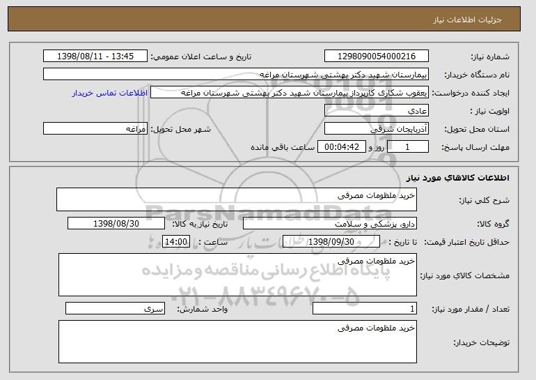 نام دستگاه خریدار:بیمارستان شهید دکتر بهشتی شهرستان مراغه