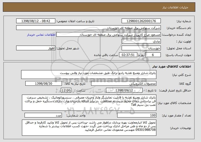 نام دستگاه خریدار:شرکت سهامی برق منطقه ای خوزستان