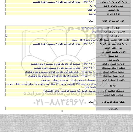مزایده شماره ۱۹۹ (فروش حدود ۲۳۰ هزار متر مکعب (در سال) پساب های خروجی پالایشگاه)