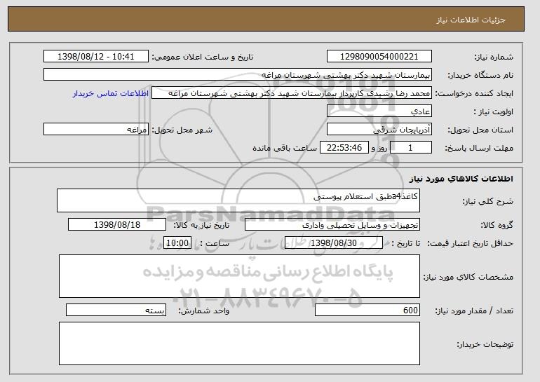 نام دستگاه خریدار:بیمارستان شهید دکتر بهشتی شهرستان مراغه