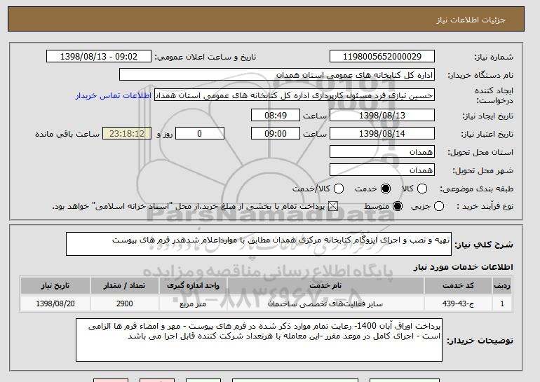 استعلام تهیه و نصب و اجرای ایزوگام کتابخانه مرکزی همدان مطابق با موارداعلام شدهدر فرم های پیوست , استعلام تهیه و نصب و اجرای ایزوگام کتابخانه مرکزی همدان مطابق با موارداعلام شدهدر فرم های پیوست