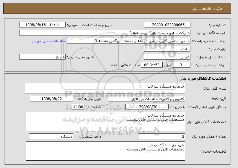 نام دستگاه خریدار:شرکت غله و خدمات بازرگانی منطقه 3