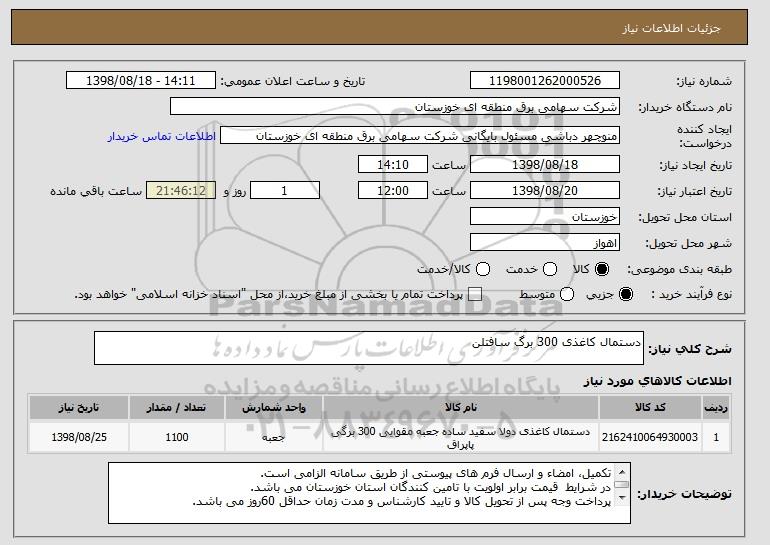 شرح کلی نیاز: دستمال کاغذی 300 برگ سافتلن