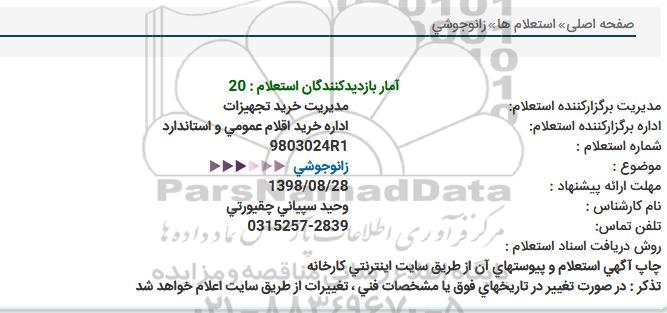 اداره برگزارکننده استعلام: اداره خرید اقلام عمومی و استاندارد