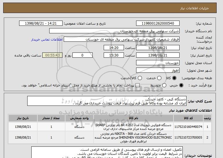 نام دستگاه خریدار:شرکت سهامی برق منطقه ای خوزستان