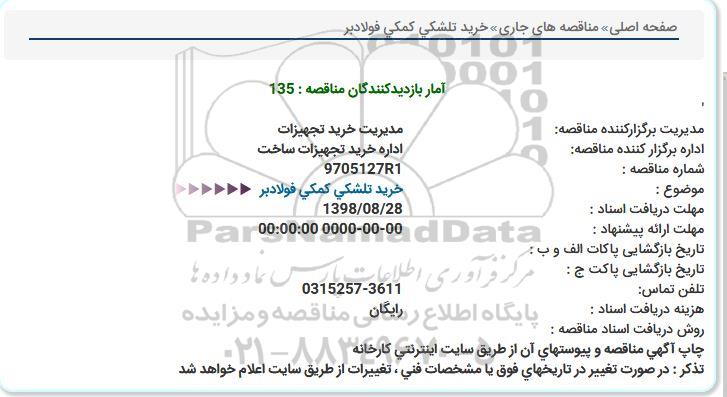 اداره برگزارکننده استعلام: اداره خرید تجهیزات ساخت