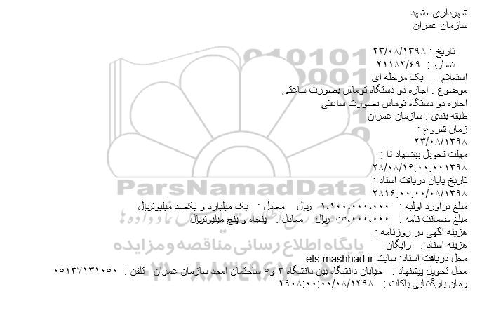 محل تحویل پیشنهاد : خیابان دانشگاه بین دانشگاه 3 و5 ساختمان امجد سازمان عمران تلفن : 05137131050