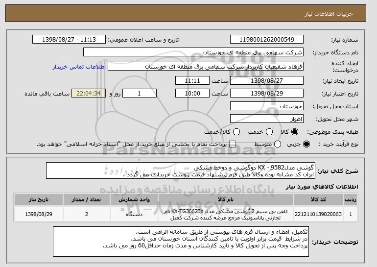 شرح کلی نیاز: گوشی مدلKX - 9582 دوگوشی و دوخط مشکی