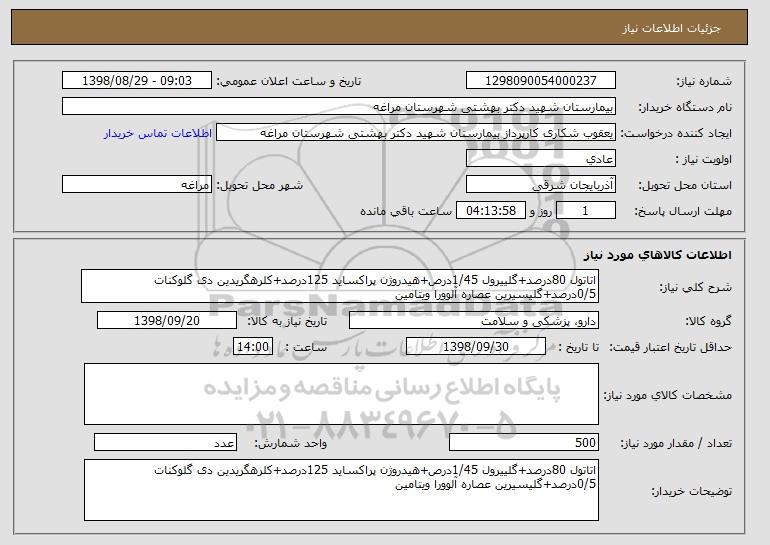 نام دستگاه خریدار:بیمارستان شهید دکتر بهشتی شهرستان مراغه