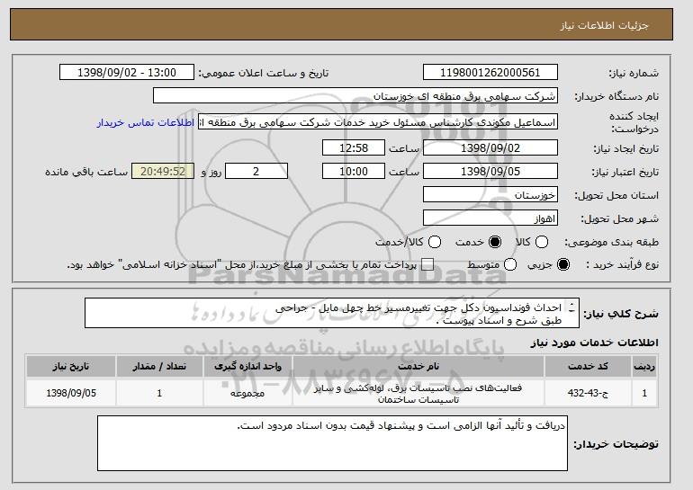 شرح کلی نیاز: احداث فونداسیون دکل جهت تغییرمسیر خط چهل مایل - جراحی