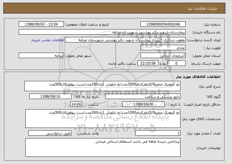 نام دستگاه خریدار:بیمارستان شهید دکتر بهشتی شهرستان مراغه